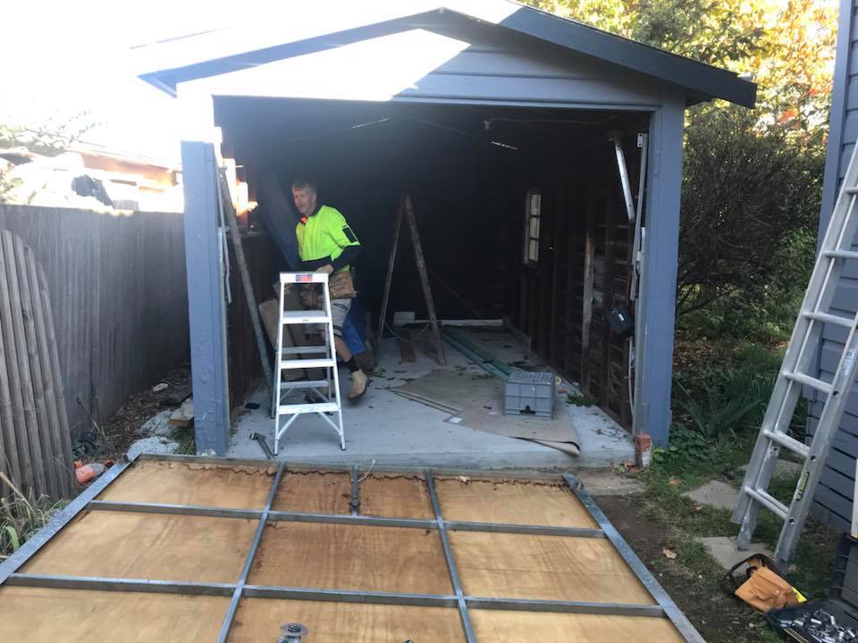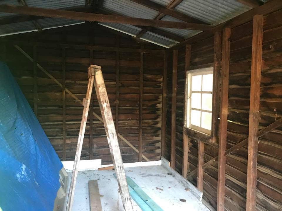 We discussed the options of turning an old run down shed into a room that could be used as an office. We were able to keep the original cladding and frames. We poured a new concrete floor inside the old shed as we needed to prevent water ingress into the building, 100mm of reinforced concrete helped to solve this problem.